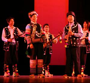 陈习娘1975 年拜张和阿、张明呼等师傅学习哈尼族的“背马”、山歌、乐器、舞蹈等。在哈尼族多声部音乐《吾处阿茨》演唱中,他主要担任主旋律演唱和小三弦的伴奏,且可载歌载舞。多年来,他通过努力刻苦学习,掌握了哈尼族多声部民歌吹、拉、弹、唱各种技艺,无论是声乐还是器乐,都能表现出哈尼族多声部民歌的传统旋律、调式、音色、技法等特色,逐步成长为哈尼族多声部民歌最有代表性的传承人。