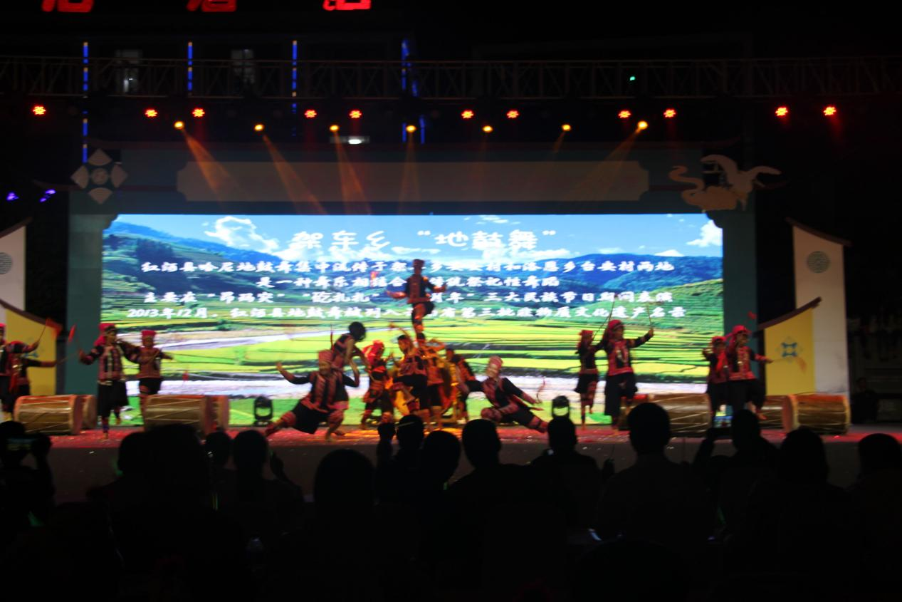 地鼓舞历史悠久,在哈尼族生活中源远流长,是一种舞乐相结合的传统祭祀性舞蹈,主要在“昂玛突”“矻扎扎”“十月年”三大民族节日期间表演,不被熟知,曾经一度面临消亡,自2013年12月被列入云南省第三批非物质文化遗产名录,从此逐渐走入大众视野,得到了较好的发展。
