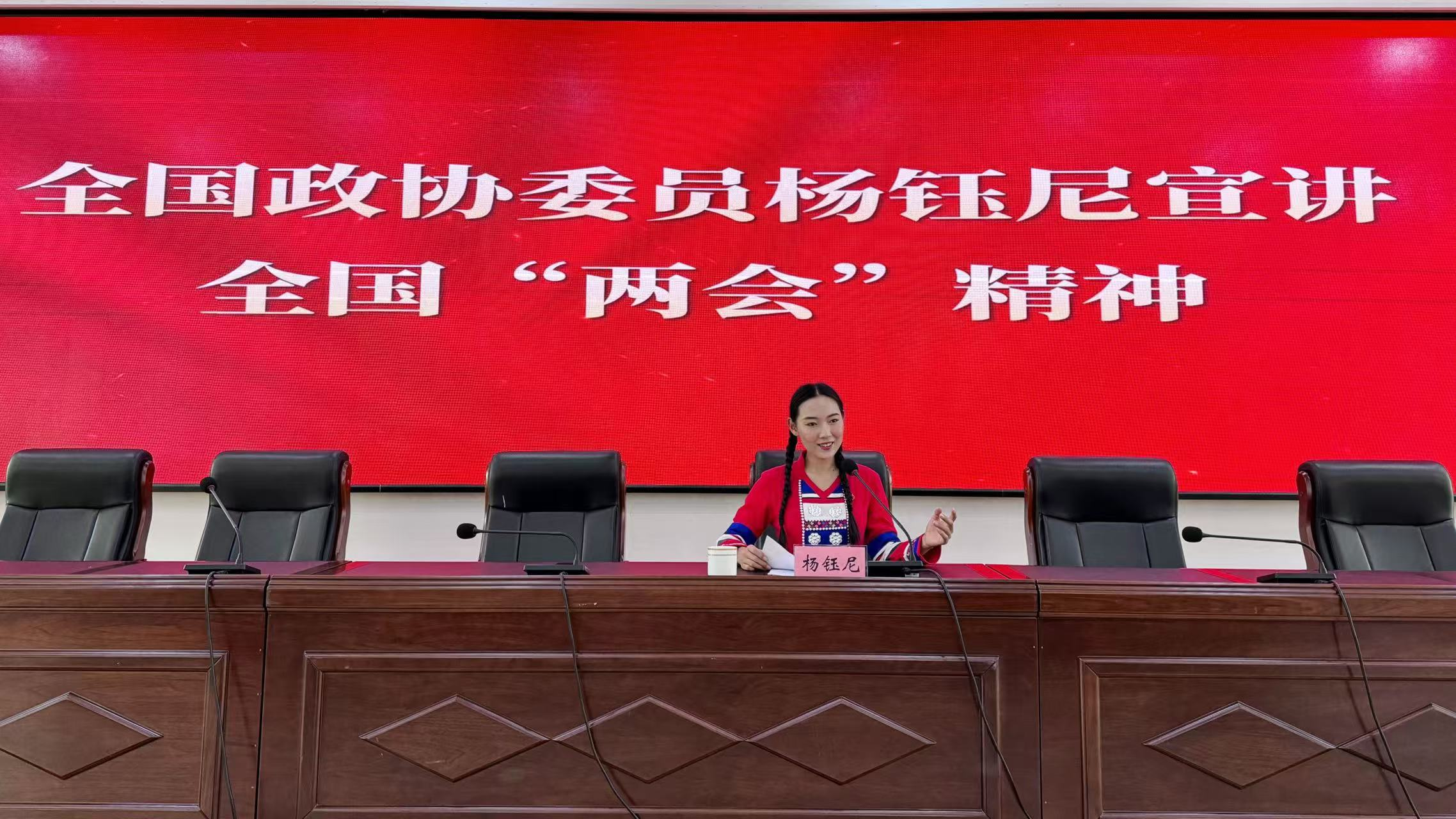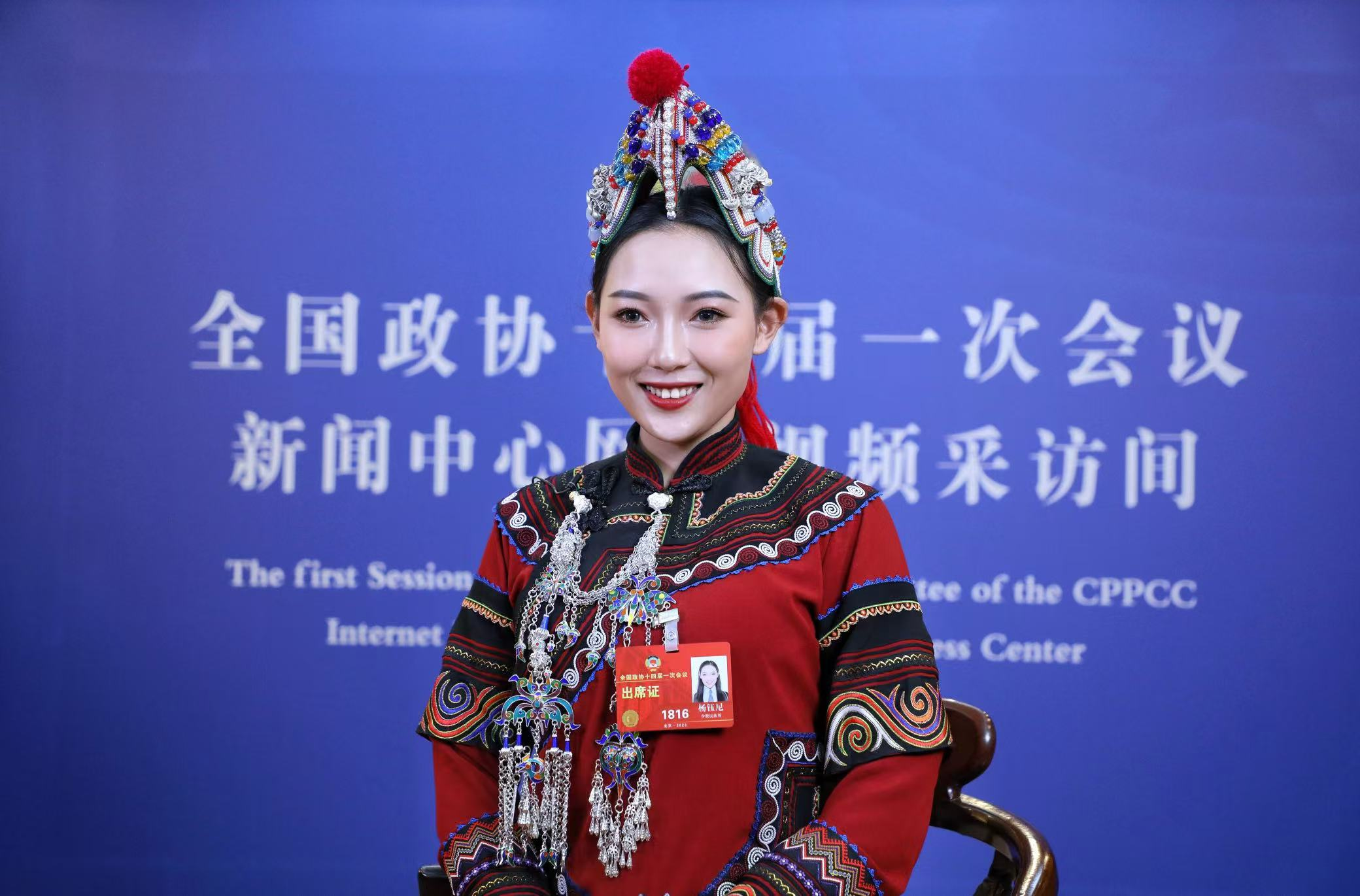 杨钰尼,女,哈尼族,1996年生,红河县乐作舞国家级非遗代表性项目县级传承人,红河县迤萨镇人,现任十四届全国政协委员、十二届云南省青联常务委员、钰尼文化艺术传承中心创始人、红河州妇联执委、红河州新的社会阶层人士联谊会理事,红河州青年创业就业联合会副会长、红河哈尼梯田文化传承学校教学点校长、红河县青联副主席、红河县电子商务协会会长、红河县志愿服务联合会会长,目前,宣讲100余场次。2016年在红河县创办钰尼文化艺术传承中心,开展民族歌舞教学和文艺志愿服务下乡活动,助力边疆孩子成长成才、基层群众实现精神富裕,已累计培养基层学员3000余人,现有在校生400余人。曾获“中国优秀民族文化艺术传承人”“全国高校毕业生基层就业卓越奖”“美育先进教师”“红河县侨乡乡土人才”“最美新的社会阶层人士”等荣誉称号,创编作品多次荣获国家和国际级比赛特金奖,2018年带领哈尼青少年儿童走上鸟巢国家体育馆,与“一带一路”沿线国家代表团联欢,开展国际文化艺术交流。从任红河县政协委员,到全国政协委员,她跋山涉水、走村串寨,深入边疆各地走访调研,以青年力量促进乡村振兴,以专业美育传承民族优秀文化、助力民族团结进步,为构建边疆地区共有的精神家园贡献智慧和力量。