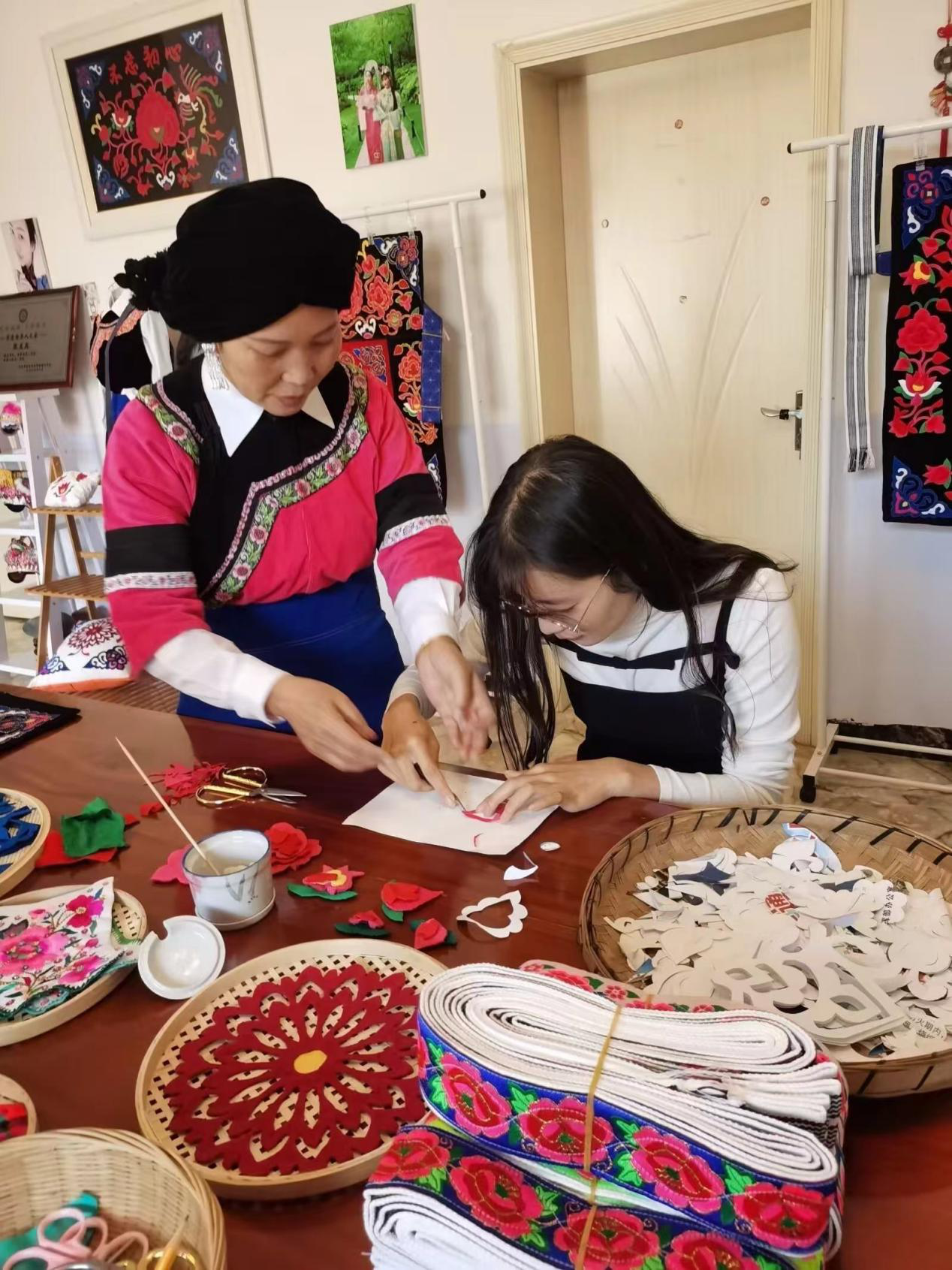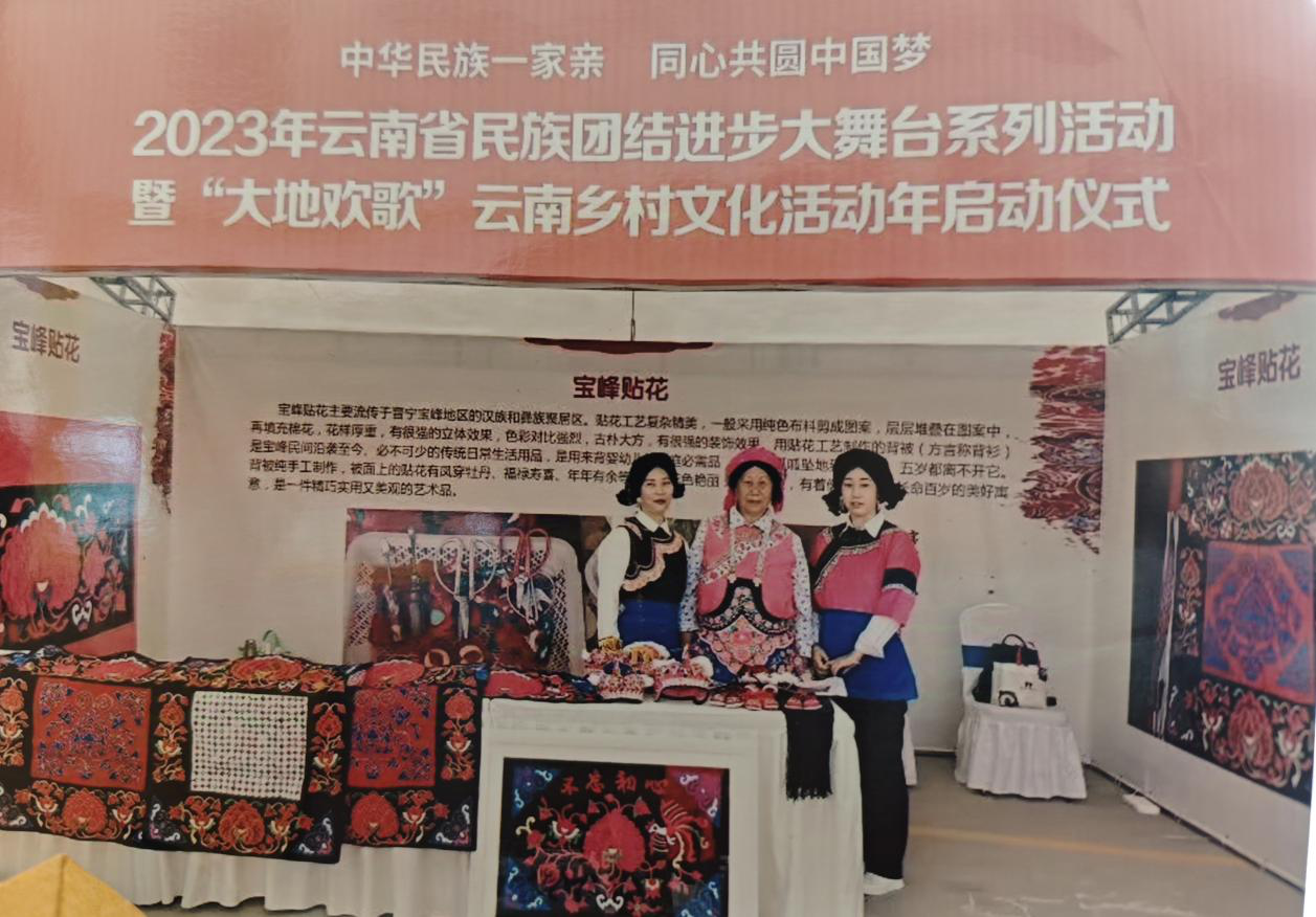 王雪晴自幼师从奶奶后师承母亲张兰英,其母亲于2021年7月认定为区级非物质文化遗产代表性传承人。宝峰贴花背被制作技艺一般不传给外人,大多是由母亲传给女儿、婆婆传给儿媳。王雪晴在母亲张兰英的言传身教下,现在已经是晋宁区数一数二的宝峰贴花制作高手。于2023年7月注册了《宝峰贴花工作室》,同年10月正式挂牌,工作室被设立为省级非物质文化遗产代表性项目宝峰贴花传习点,现宝峰贴花非遗传习点已经正式对外开放,可供群众免费体验学习贴花制作技艺。并多次参加省市级、区、街道的各种非遗展示,从未缺席。