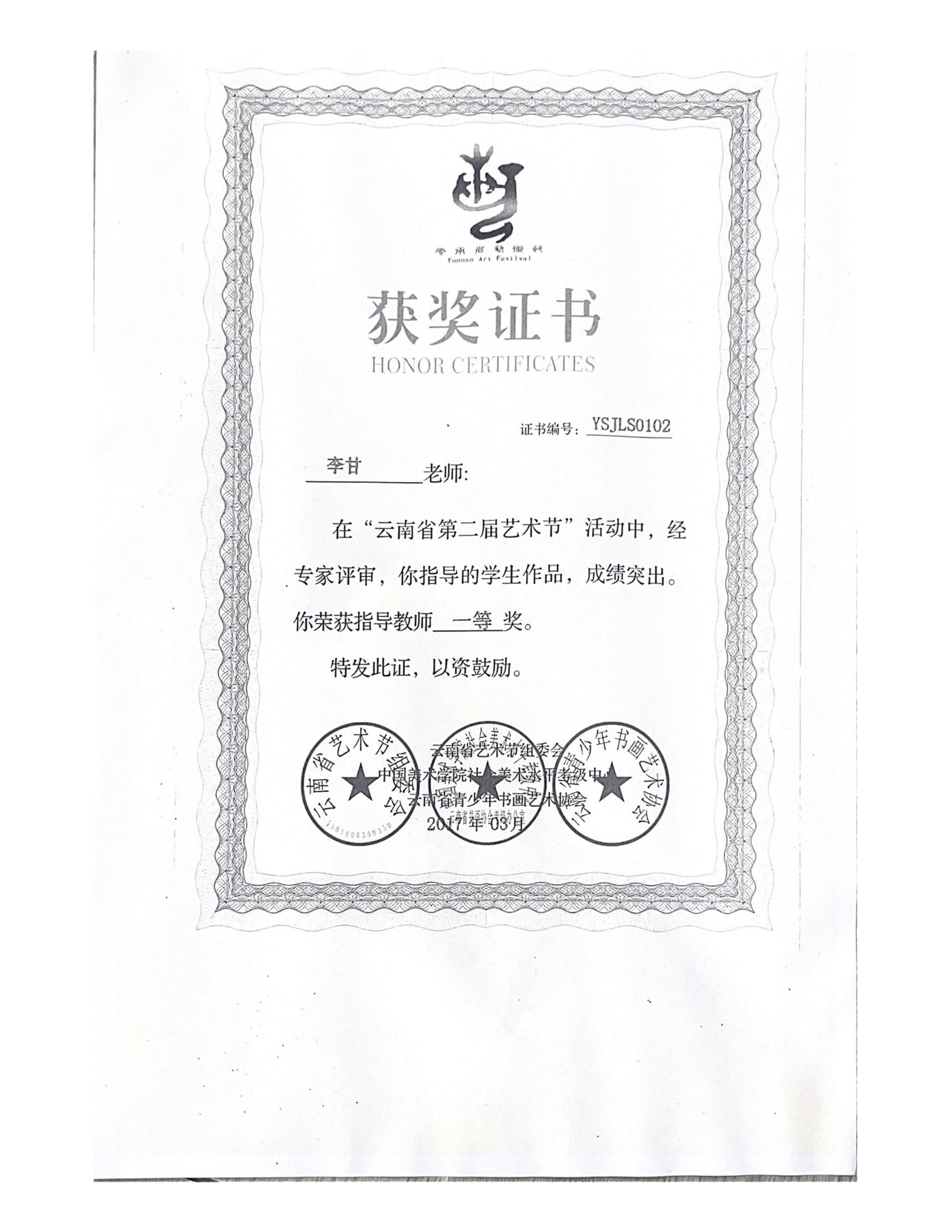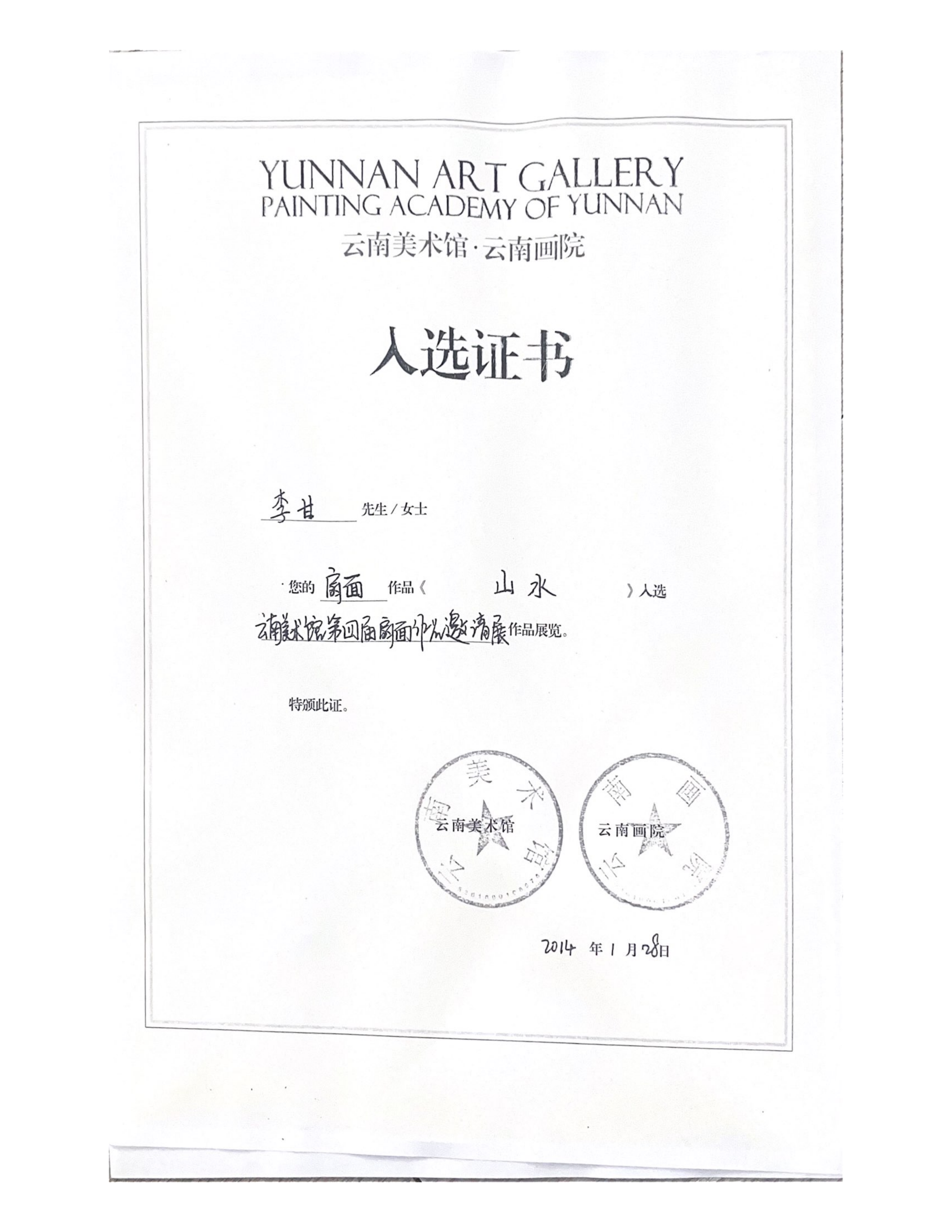 李甘 2004年9月—2007年6月 就读于云南文化艺术职业学院,师从著名画家李河良教授。