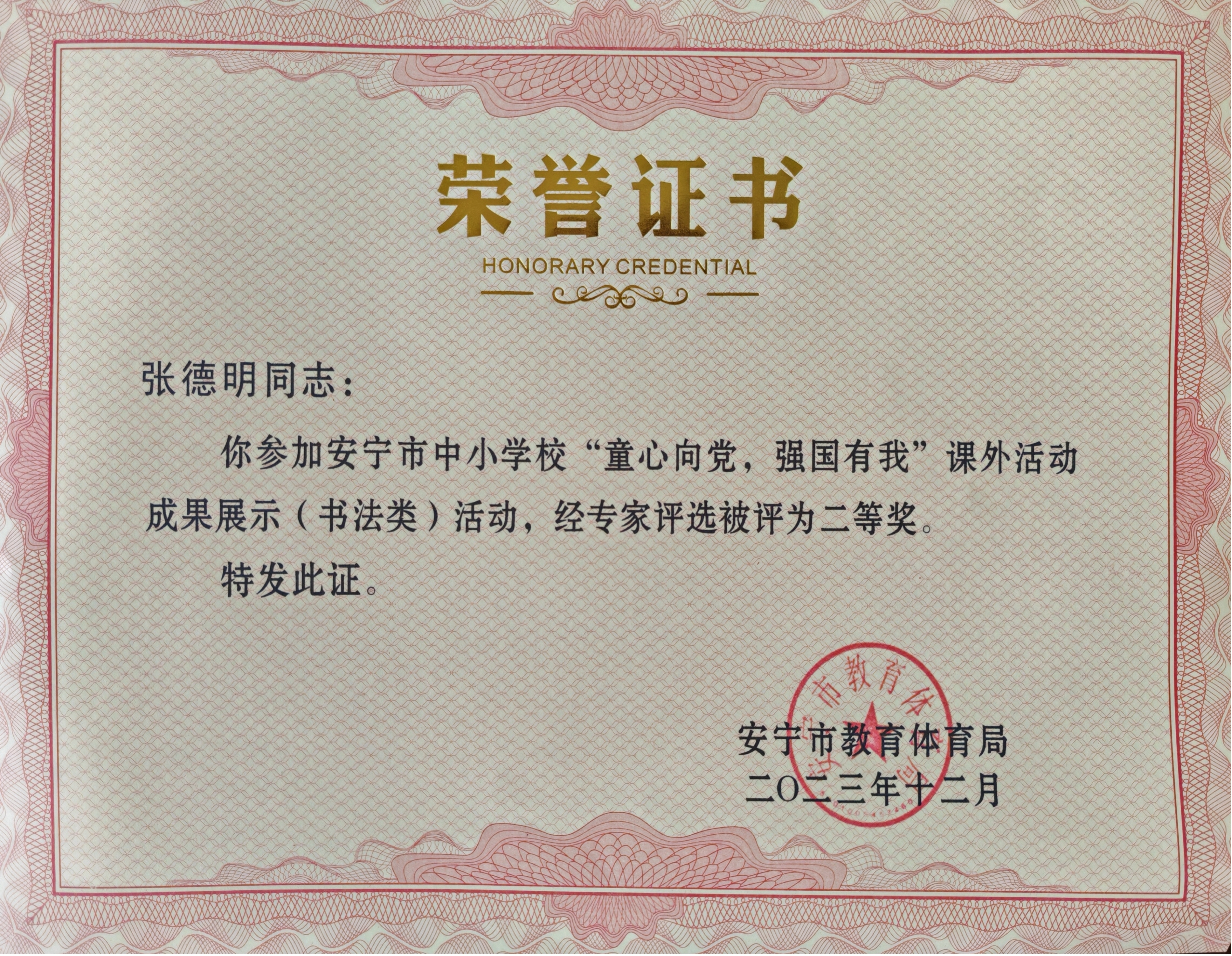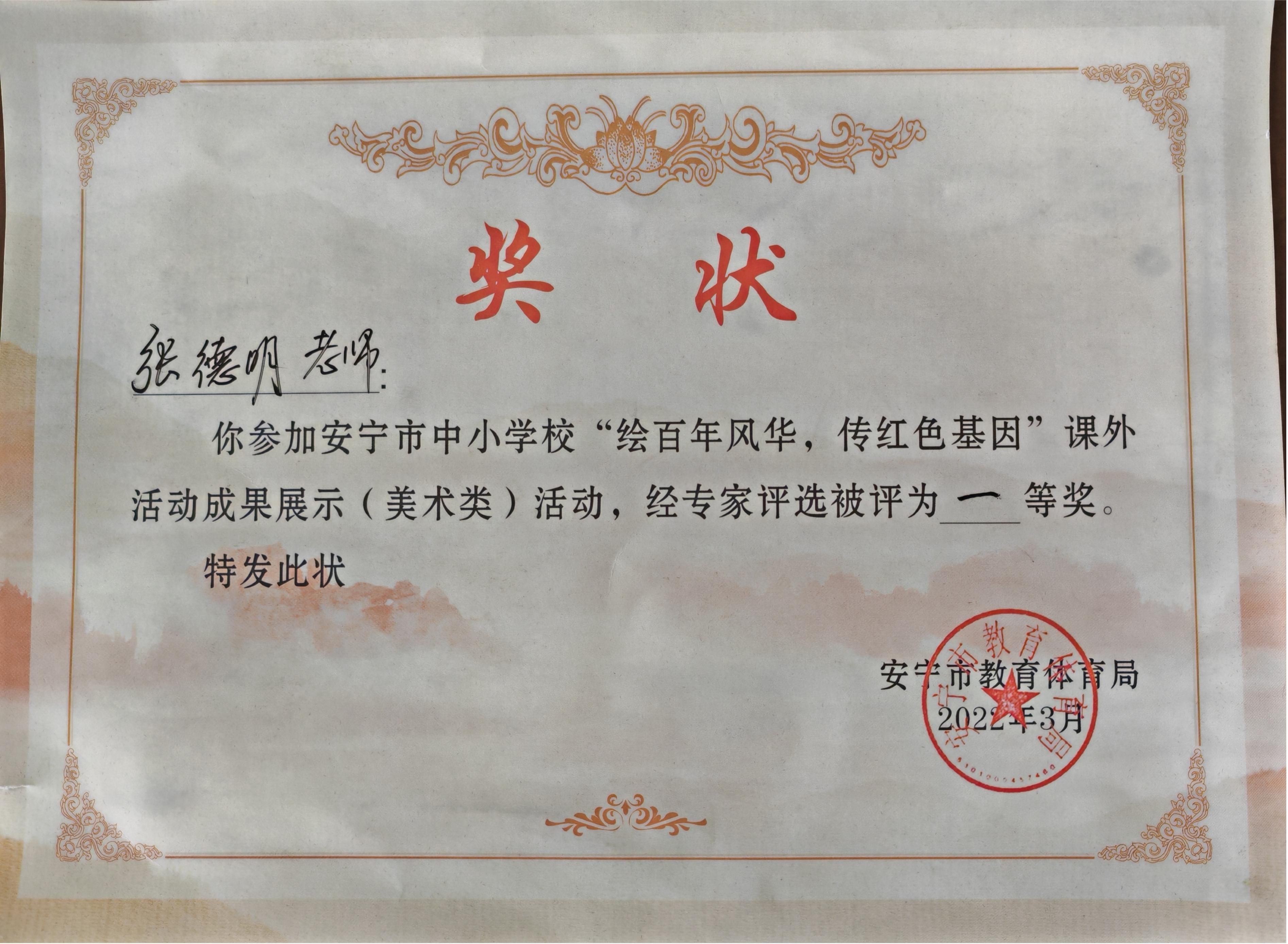 张德明 1986年8月—1999年7月 安宁市青龙双湄小学任教,长期担任小学语文、书法教学;