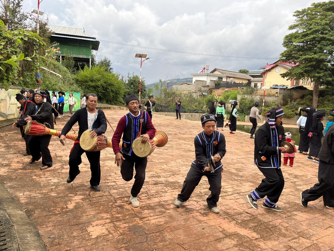 陈格飞参加布朗族蜂桶鼓舞表演