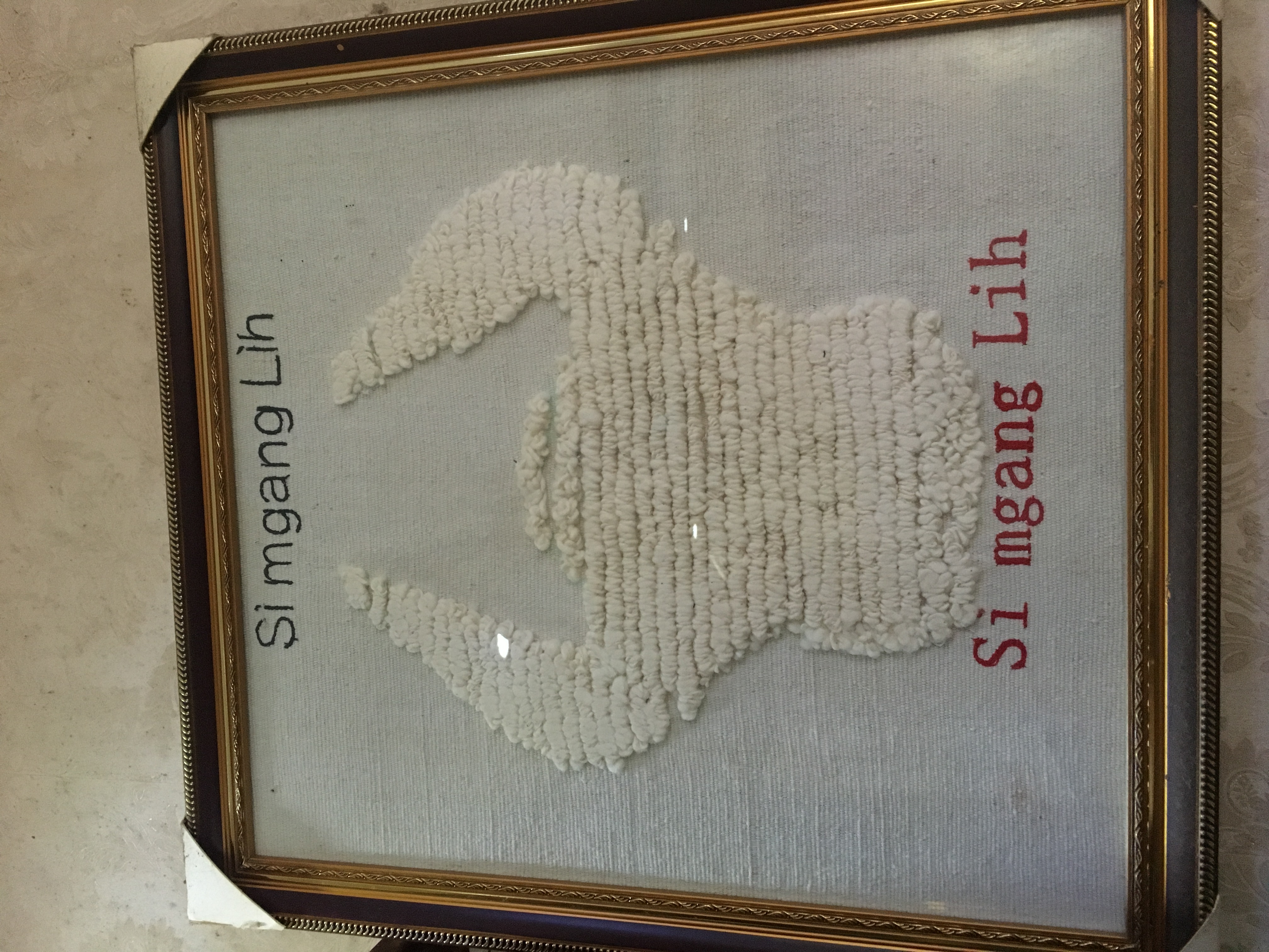 图为:李波用佤族牛肚被纺织技艺制作的装饰画