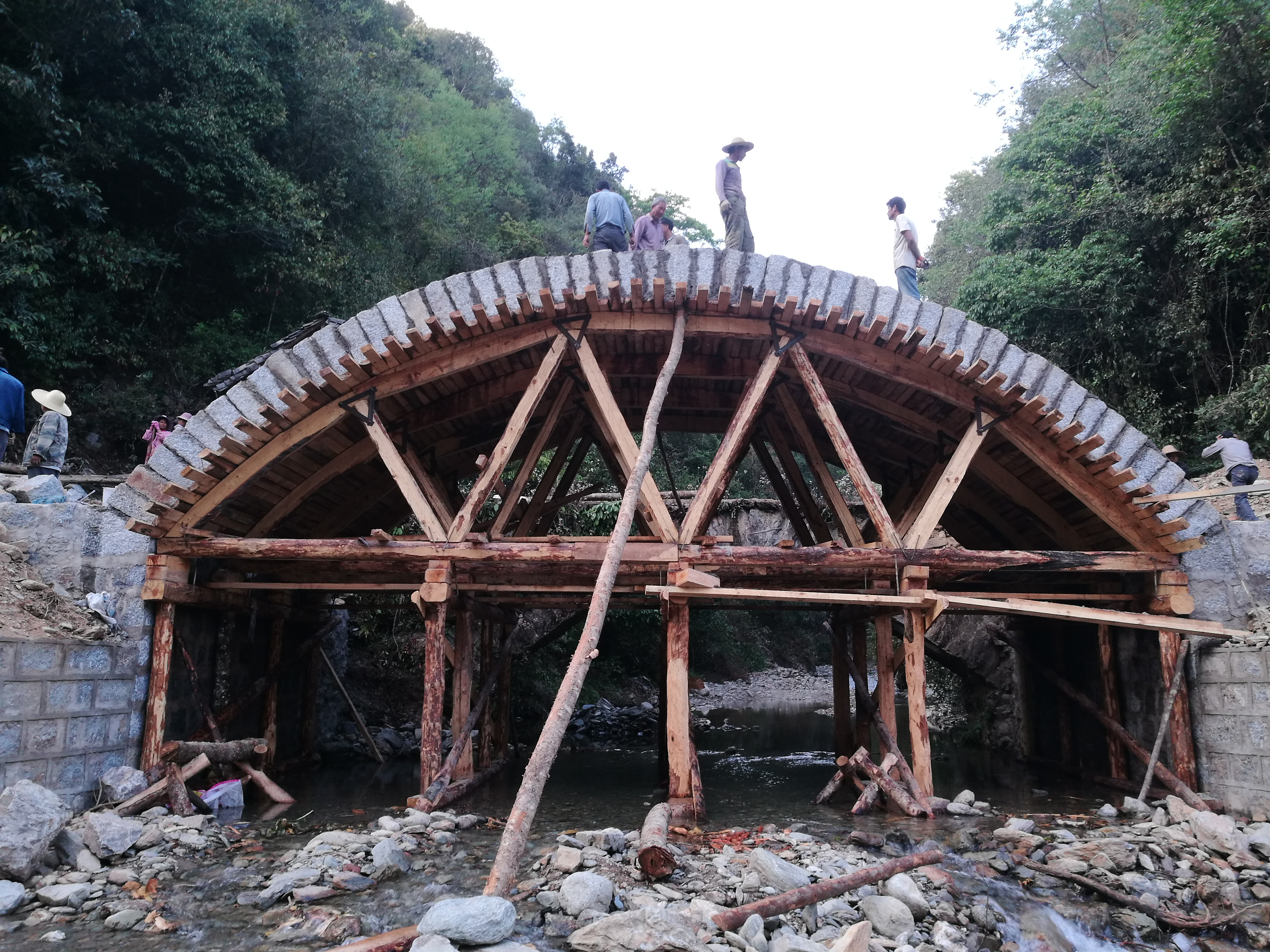 二、2019年独立设计承建者东镇南老河石拱桥(16米跨);2019年设计承建和平镇集镇汤锅美食街大屋架房。