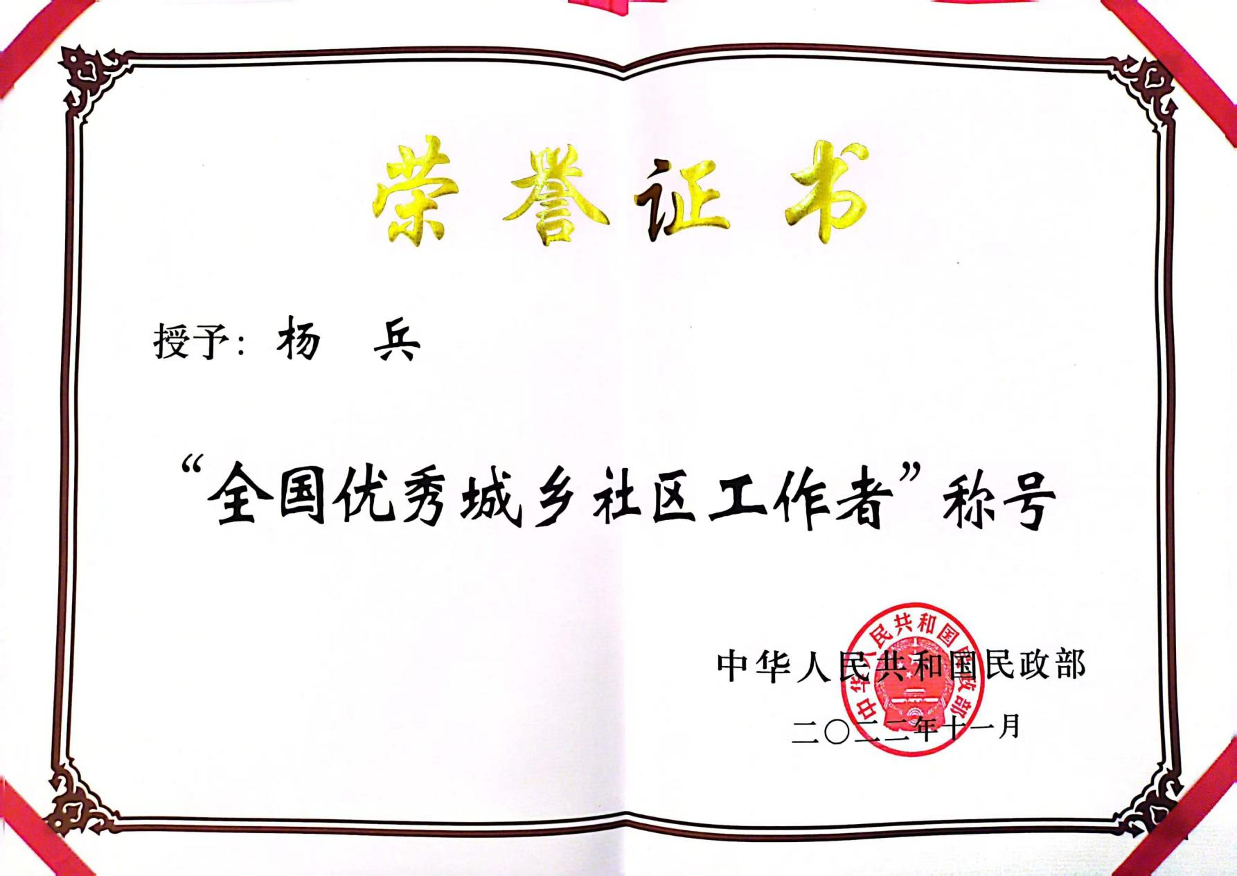 “全国优秀城乡社区工作者”