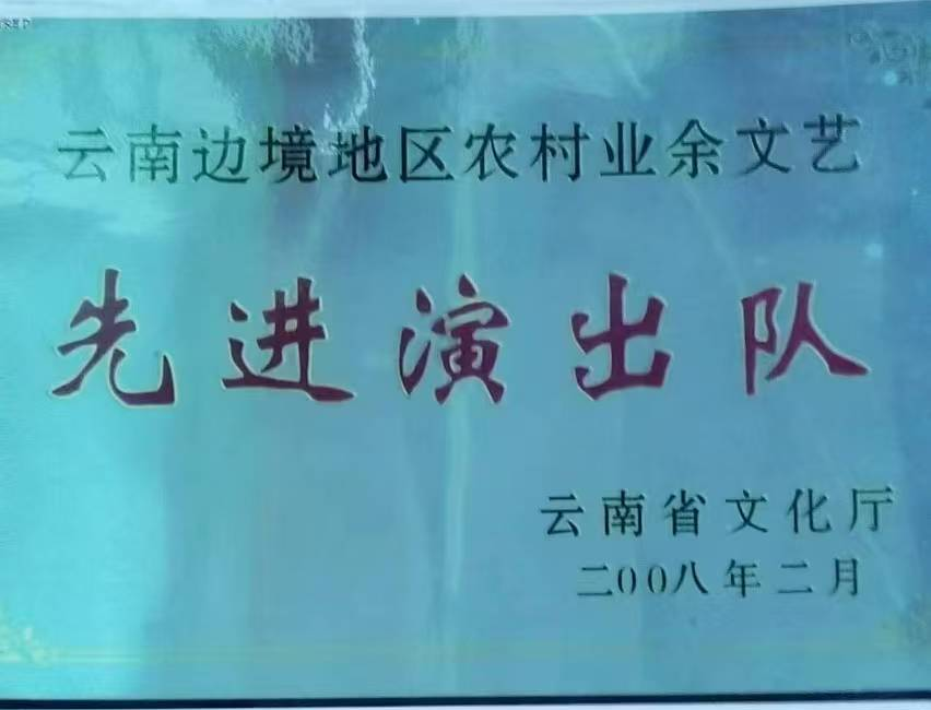 图为2008年2月获云南边境地区农村业余文艺“先进演出队”