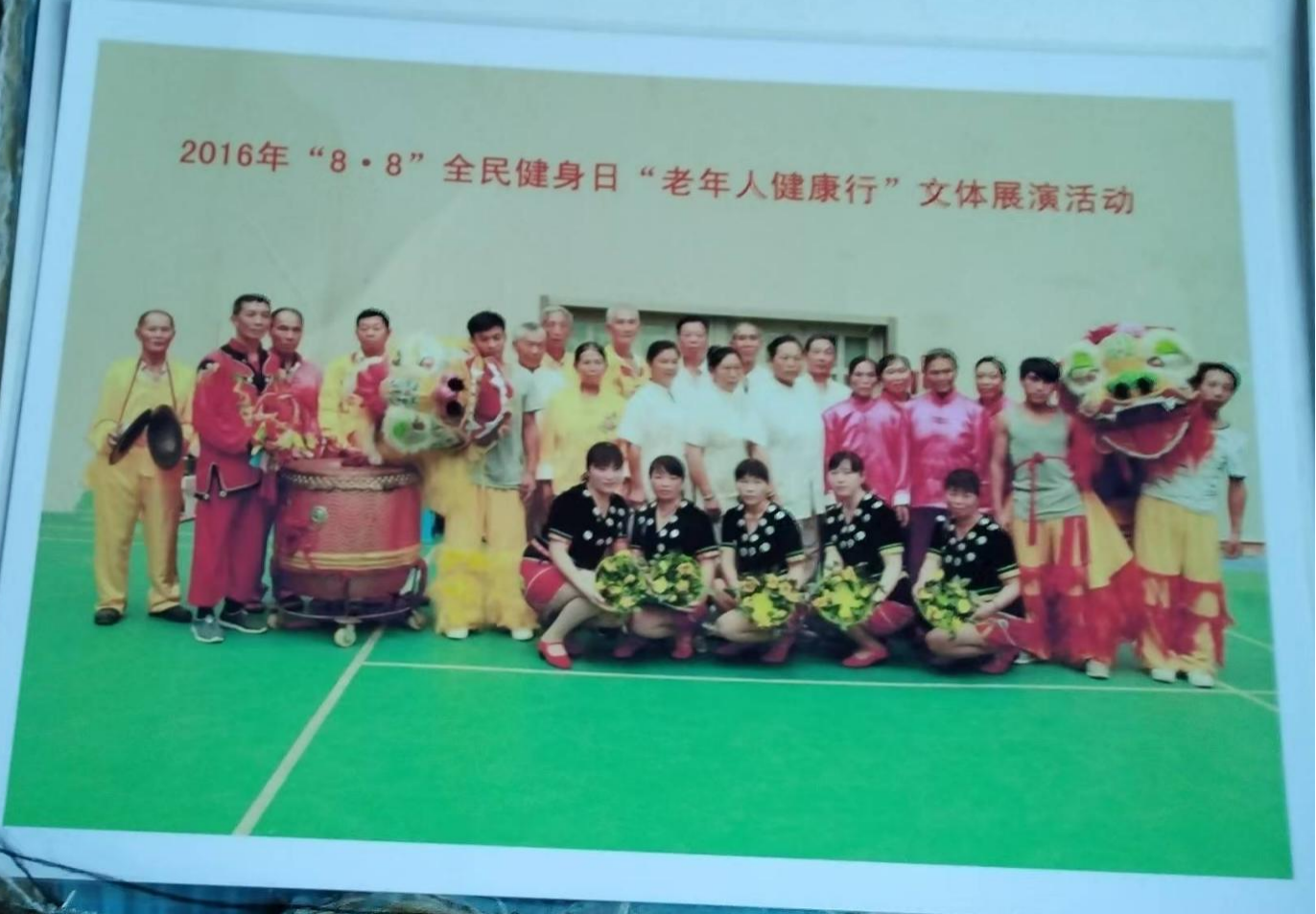 图为2016年参加全民健身日“老年人健康行”文体展演活动