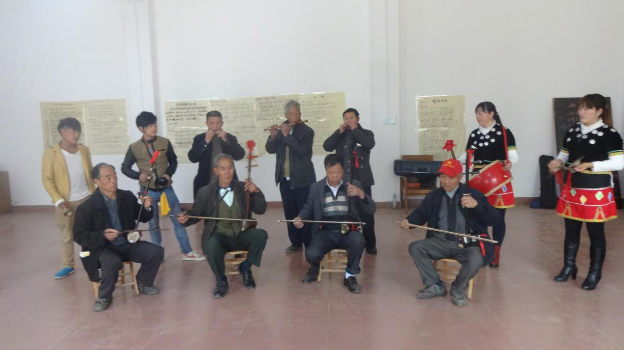 图为富宁县木央镇睦伦老龄体育协会开展“洞泾音乐”演奏演练